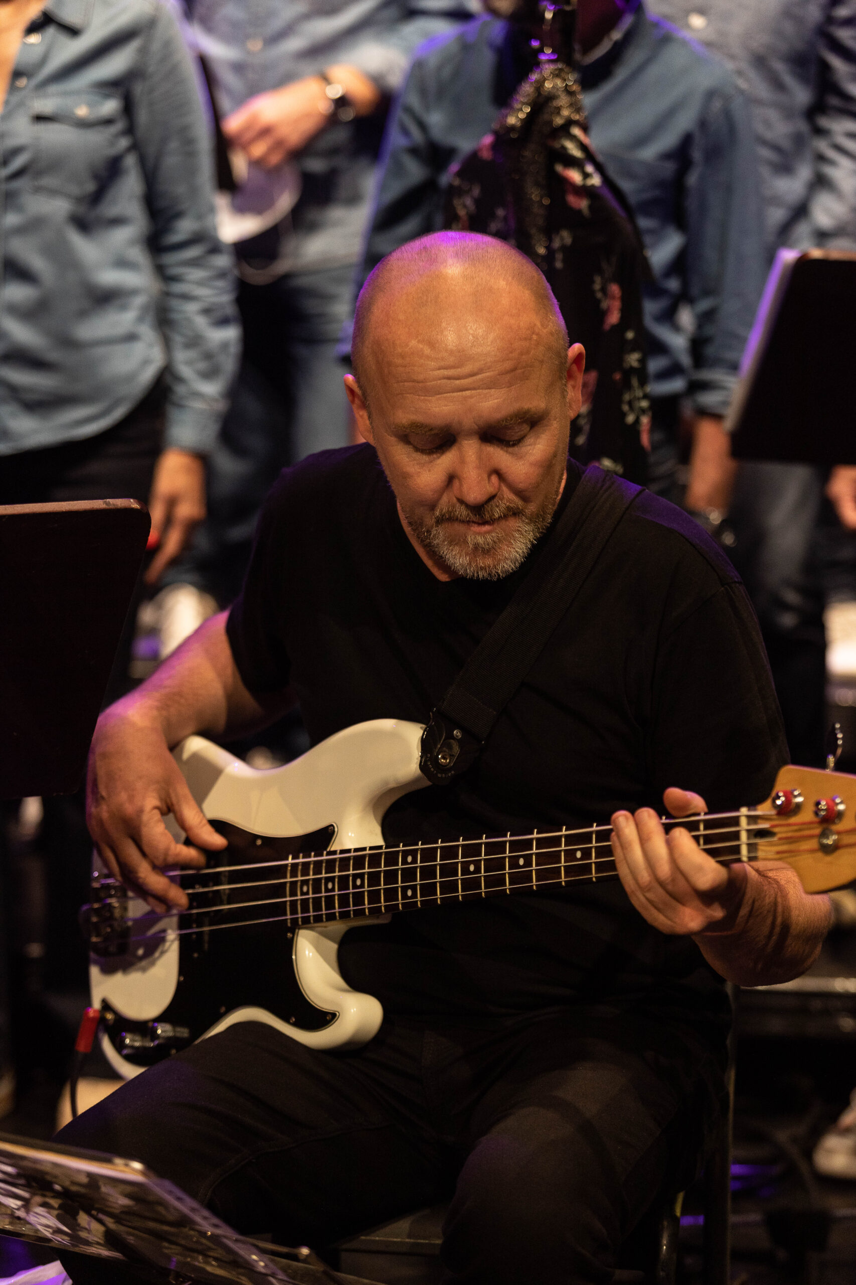 Une super cheffe de choeur et voix (Alice), un trombone, un piano, des percussions, une basse, et d’autres encore.